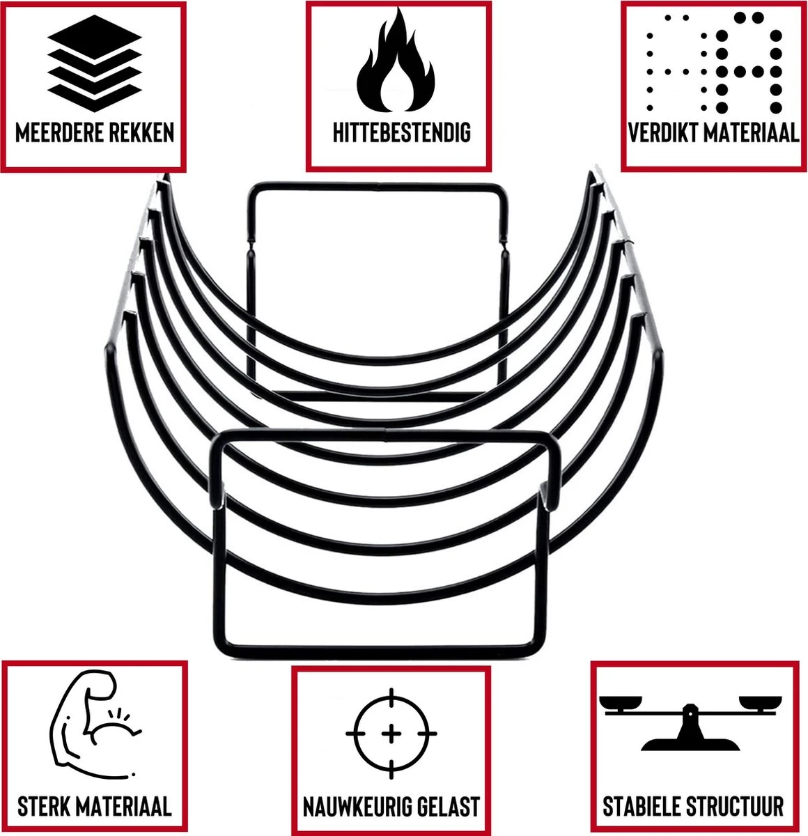 - Hittebestendig: deze rib rack is bestand tegen de hoge temperaturen van een barbecue of oven. Hij wordt niet plakkerig en neemt warmte snel op.